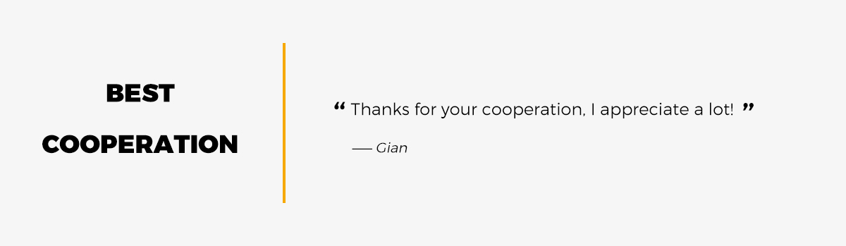 We hope that, because of our accompany, our customers can enjoy their happy life. Therefore, some of our customers have become long-term partners to develop their careers together and grow steadily and healthily.